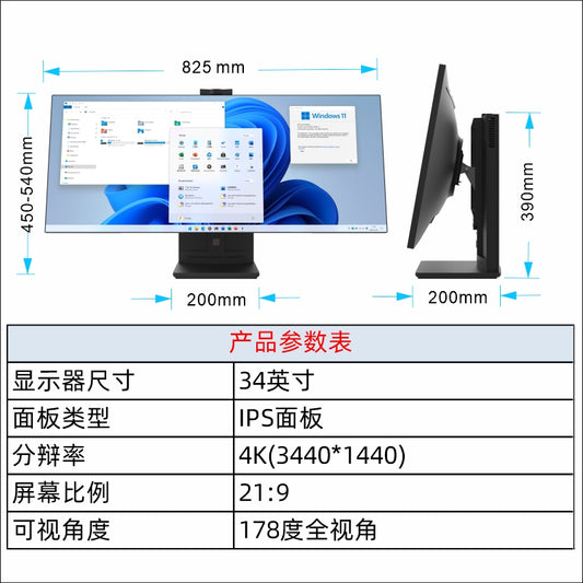 34 inch flat All In One PC 4K HD Fish Screen All In One Computer16GB RAM Adjustable Office Computer