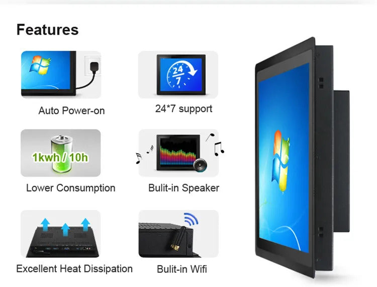 Industrial Control, ATM, POS, Indoor/outdoor Kiosks, Transportation, Advertisement machine, Gaming, Medical,etc.