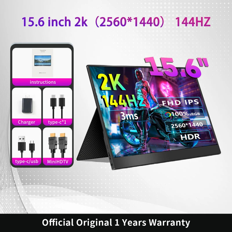 15.6 Inch 2K Portable Monitor 144Hz 2560*1440 100%sRGB IPS Gaming Display USB C HDMI HDR Screen for Xbox PS4 Switch Laptop
