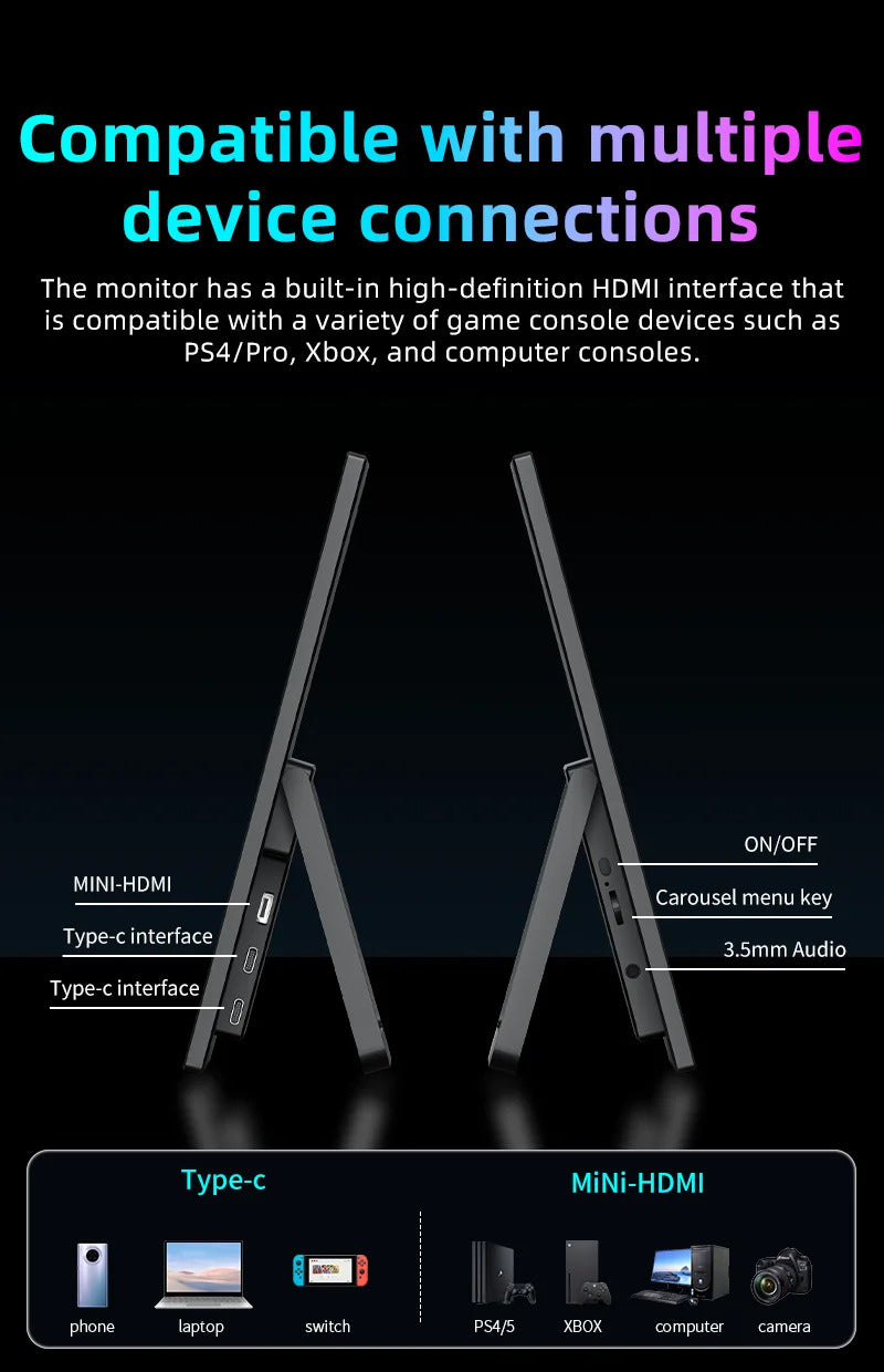 15.6 Inch Portable Monitor Touch Screen Monitor with VESA FHD 1080P IPS Gaming Display for Laptop PS4/5 Switch Xbox Phone