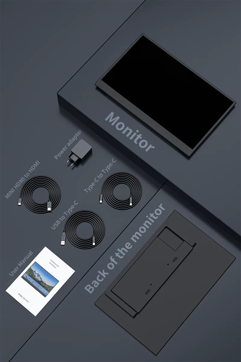 Use a 5V-3A adapter to connect the screen via the Type C to USB cable.