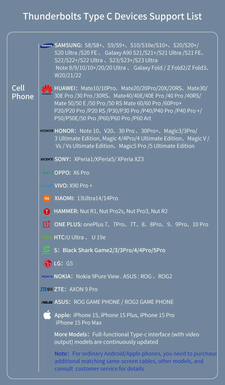 Phone Touch: Only support Thunderbolts TYPE C phone.